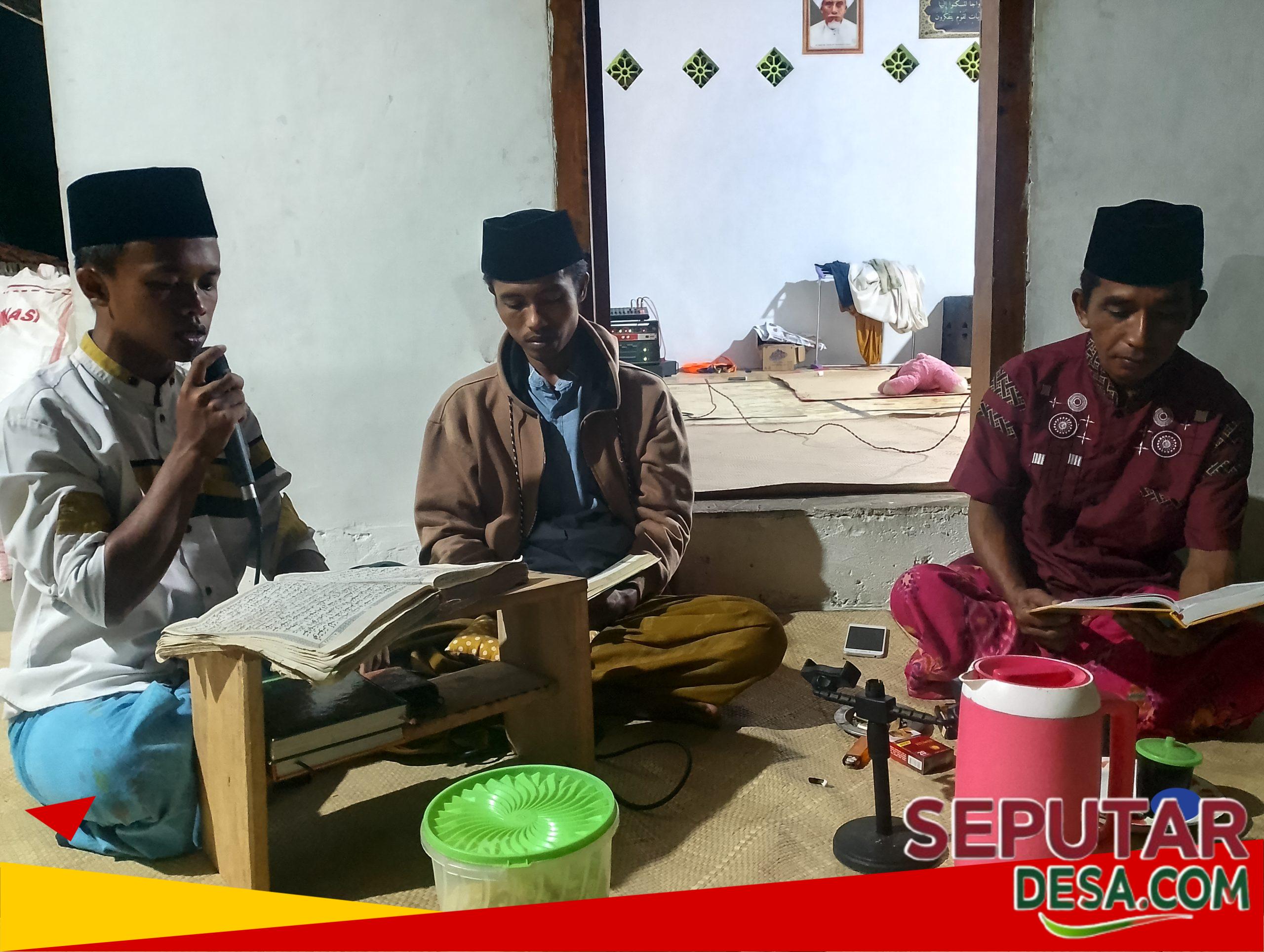 Di bawah bimbingan tokoh setempat, ayat-ayat suci Al-Qur’an dilantunkan secara bergantian, menciptakan suasana khidmat di tengah malam Ramadan.